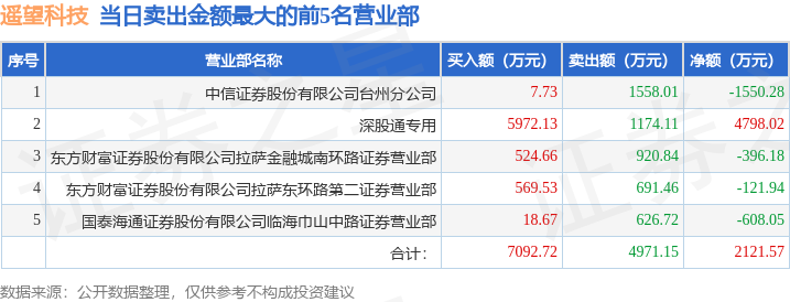 证券之星消息,沪深交易所2025年9月26日公布的交易公开信息显示,遥望科技(002291)因日涨幅偏离值达到7%的前5只证券登上龙虎榜。此次是近5个交易日内第1次上榜。