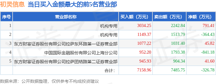 证券之星消息,沪深交易所2025年9月26日公布的交易公开信息显示,初灵信息(300250)因日换手率达到30%的前5只证券登上龙虎榜。此次是近5个交易日内第5次上榜。