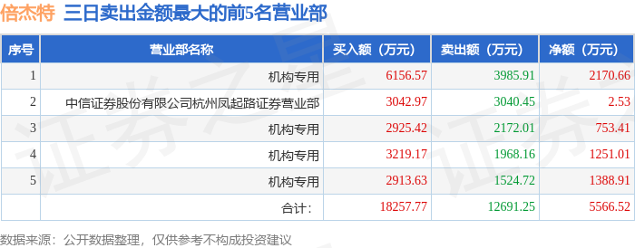 证券小知识:龙虎榜是交易所披露的竞价交易公开信息,现身龙虎榜的个股都是当日最为活跃的个股,是投资者日常重点关注的数据。交易所公布当日买入金额和卖出金额前五名的席位,其中一些席位代表特殊意义,如机构专用席位是指基金专用席位、券商自营专用席位、社保专用席位、券商理财专用席位、保险机构专用席位、保险机构租用席位、QFII专用席位等机构投资者买卖证券的专用通道和席位。深股通专用、沪股通专用为北向资金的交易席位。从龙虎榜数据可以发现和研究机构、游资和散户的资金动向。一些营业部席位经常上榜,市场知名度较高,投资者整理代表散户、游资、量化等不同资金的营业部席位。