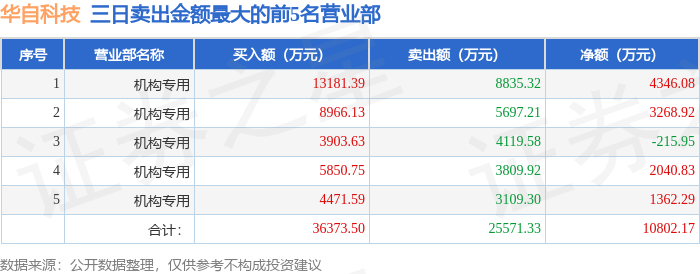 从龙虎榜公布的三日买卖数据来看,机构合计净买入1.08亿元。