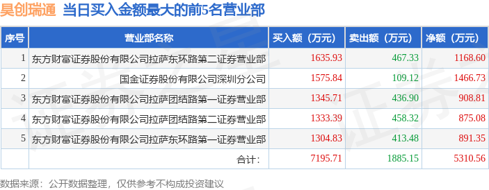 证券之星消息,沪深交易所2025年9月26日公布的交易公开信息显示,昊创瑞通(301668)因无价格涨跌幅限制的证券登上龙虎榜。此次是近5个交易日内第1次上榜。