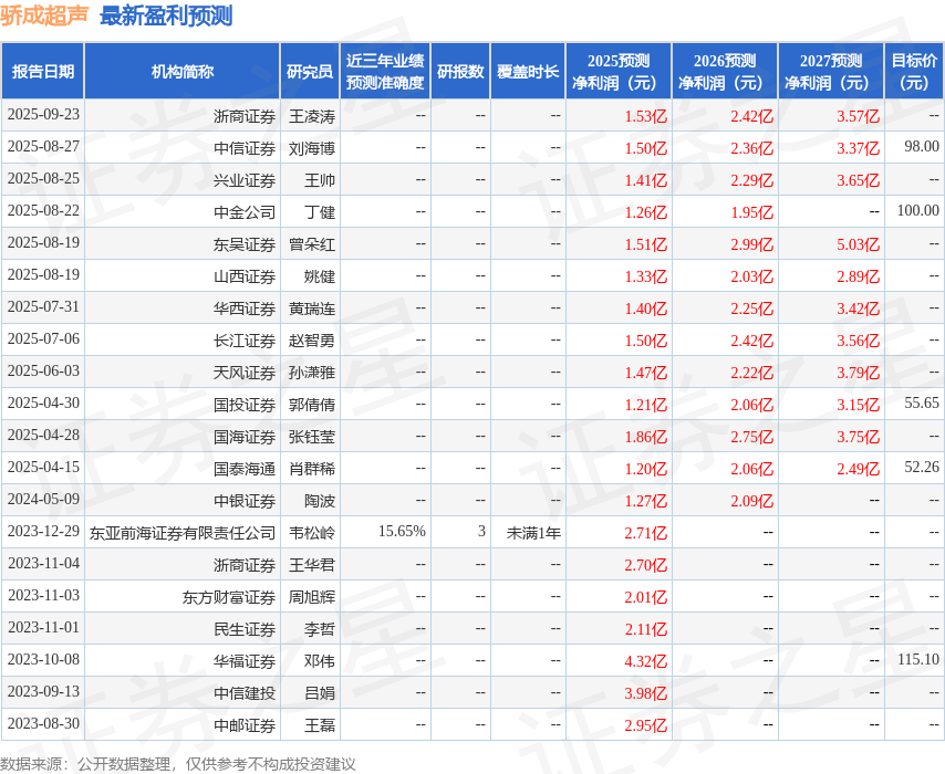 以下是详细的盈利预测信息: