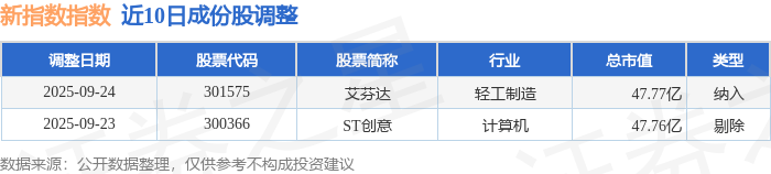 近10日内新指数(399100)成份股做了调整,新纳入了1只股票,剔除了1只股票。