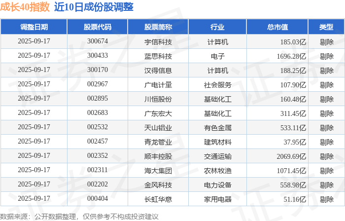 近10日内成长40(399326)指数成份股做了调整,剔除了12只股票。