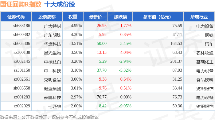 国证回购R(480063)指数十大成份股详情如下: