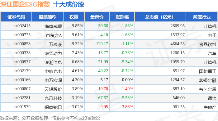 深证国企ESG(970055)指数十大成份股详情如下: