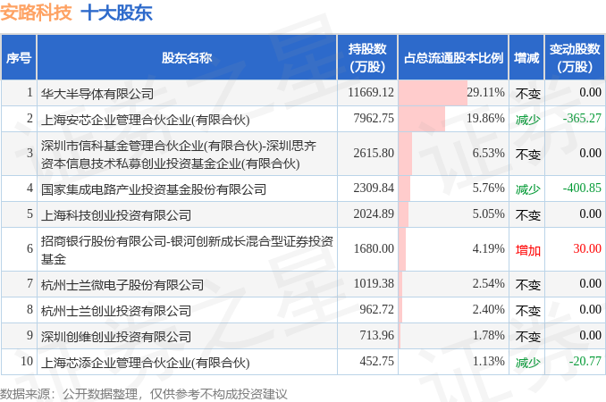 根据安路科技2025年中报公布的十大股东详情如下: