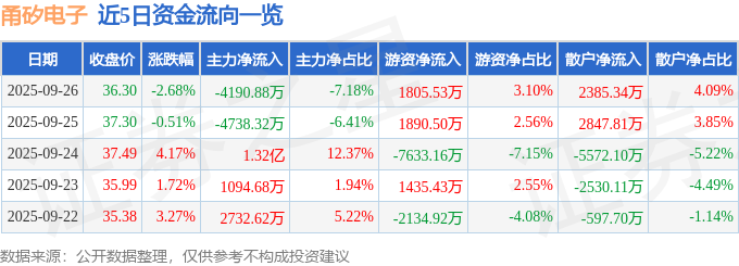 9月26日的资金流向数据方面,主力资金净流出4190.88万元,占总成交额7.18%,游资资金净流入1805.53万元,占总成交额3.1%,散户资金净流入2385.34万元,占总成交额4.09%。