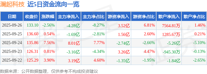 证券之星消息,截至2025年9月26日收盘,澜起科技(688008)报收于133.1元,下跌2.56%,换手率3.32%,成交量37.98万手,成交额51.79亿元。