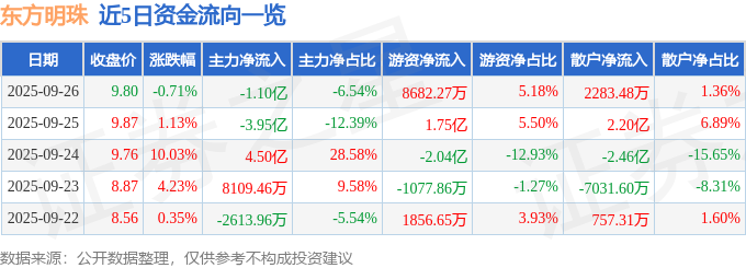 9月26日的资金流向数据方面,主力资金净流出1.1亿元,占总成交额6.54%,游资资金净流入8682.27万元,占总成交额5.18%,散户资金净流入2283.48万元,占总成交额1.36%。