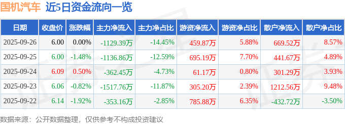 证券之星消息,截至2025年9月26日收盘,国机汽车(600335)报收于6.0元,上涨0.0%,换手率0.87%,成交量12.99万手,成交额7816.71万元。