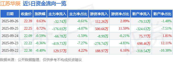 证券之星消息,截至2025年9月26日收盘,江苏华辰(603097)报收于22.39元,上涨0.63%,换手率1.51%,成交量2.41万手,成交额5366.22万元。