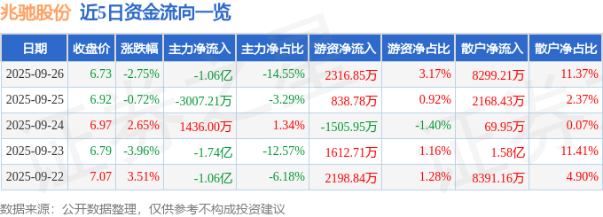 9月26日的资金流向数据方面,主力资金净流出1.06亿元,占总成交额14.55%,游资资金净流入2316.85万元,占总成交额3.17%,散户资金净流入8299.21万元,占总成交额11.37%。