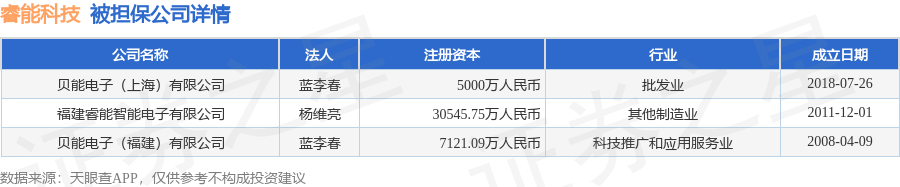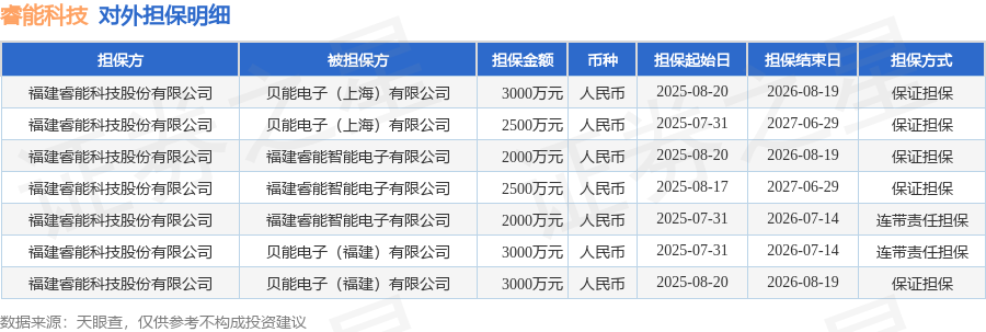睿能科技9月25日披露7笔对外担保,被担保公司3家。对外担保明细如下表: