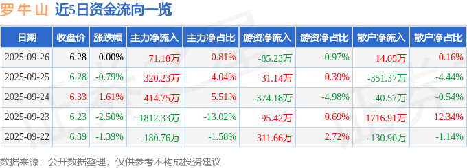 证券之星消息,截至2025年9月26日收盘,罗 牛 山(000735)报收于6.28元,上涨0.0%,换手率1.21%,成交量13.92万手,成交额8785.96万元。
