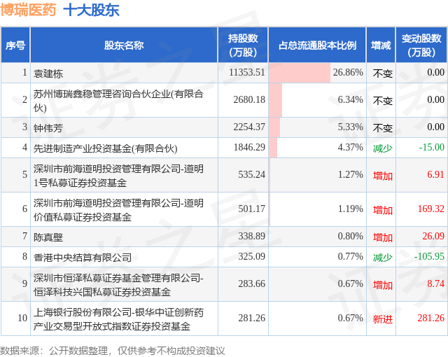 根据博瑞医药2025年中报公布的十大股东详情如下:
