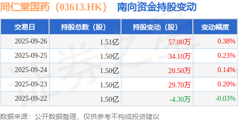 证券之星消息,9月26日南向资金增持57.0万股同仁堂国药(03613.HK)。近5个交易日中,获南向资金增持的有4天,累计净增持137.0万股。近20个交易日中,获南向资金增持的有16天,累计净增持523.0万股。截至目前,南向资金持有同仁堂国药(03613.HK)1.51亿股,占公司已发行普通股的18.03%。