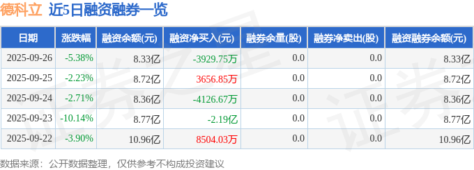 德科立融资融券信息显示,融资方面,当日融资买入1.68亿元,融资偿还2.07亿元,融资净偿还3929.75万元。融券方面,融券卖出0.0股,融券偿还0.0股,融券余量0.0股,融券余额0.0万元。融资融券余额8.33亿元。
