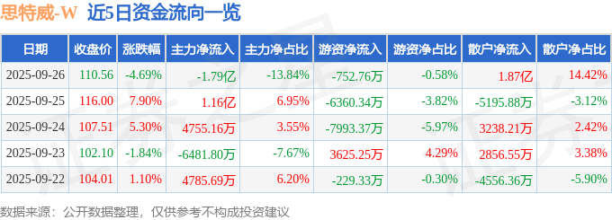 9月26日的资金流向数据方面,主力资金净流出1.79亿元,占总成交额13.84%,游资资金净流出752.76万元,占总成交额0.58%,散户资金净流入1.87亿元,占总成交额14.42%。