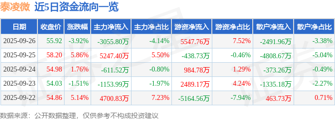 证券之星消息,截至2025年9月26日收盘,泰凌微(688591)报收于55.92元,下跌3.92%,换手率7.71%,成交量12.98万手,成交额7.38亿元。