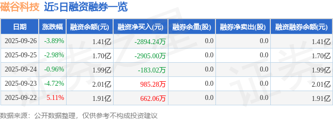磁谷科技融资融券信息显示,融资方面,当日融资买入828.41万元,融资偿还3722.64万元,融资净偿还2894.24万元。融券方面,融券卖出0.0股,融券偿还0.0股,融券余量0.0股,融券余额0.0万元。融资融券余额1.41亿元。