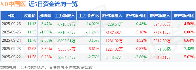 证券之星消息,截至2025年9月26日收盘,XD中国医(600056)报收于11.13元,下跌3.47%,换手率2.85%,成交量42.67万手,成交额4.79亿元。