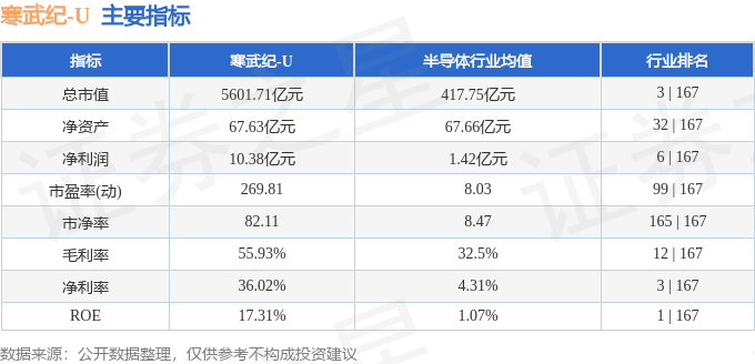 寒武纪2025年中报显示,公司主营收入28.81亿元,同比上升4347.82%;归母净利润10.38亿元,同比上升295.82%;扣非净利润9.13亿元,同比上升249.88%;其中2025年第二季度,公司单季度主营收入17.69亿元,同比上升4425.01%;单季度归母净利润6.83亿元,同比上升324.97%;单季度扣非净利润6.37亿元,同比上升283.07%;负债率19.68%,投资收益323.09万元,财务费用807.69万元,毛利率55.93%。寒武纪(688256)主营业务:应用于各类云服务器、边缘计算设备、终端设备中人工智能核心芯片的研发、设计和销售。目前,公司的主要产品线包括云端产品线、边缘产品线、IP授权及软件。