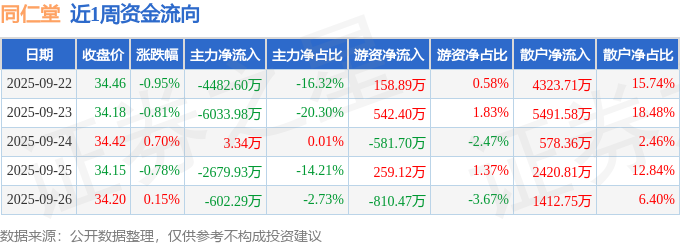 资金流向数据方面,本周同仁堂主力资金合计净流出1.38亿元,游资资金合计净流出431.75万元,散户资金合计净流入1.42亿元。本周资金流向一览见下表: