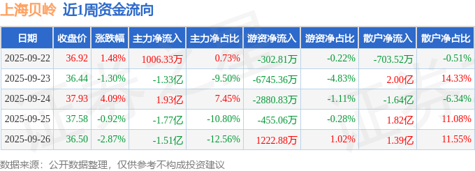 沪深股通持股方面,截止2025年9月26日收盘,上海贝岭沪股通持股数为382.44万股,占流通股比为54.0%。