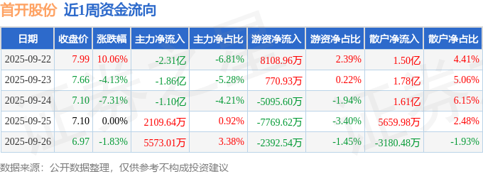 资金流向数据方面,本周首开股份主力资金合计净流出4.5亿元,游资资金合计净流出6377.87万元,散户资金合计净流入5.14亿元。本周资金流向一览见下表: