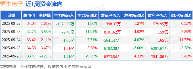 资金流向数据方面,本周恒生电子主力资金合计净流出3.79亿元,游资资金合计净流入3349.68万元,散户资金合计净流入3.45亿元。本周资金流向一览见下表: