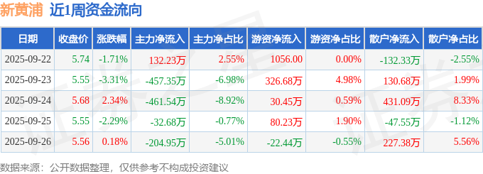 资金流向数据方面,本周新黄浦主力资金合计净流出1024.3万元,游资资金合计净流入415.02万元,散户资金合计净流入609.27万元。本周资金流向一览见下表: