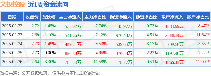 资金流向数据方面,本周文投控股主力资金合计净流出2595.94万元,游资资金合计净流出1364.28万元,散户资金合计净流入3960.22万元。本周资金流向一览见下表: