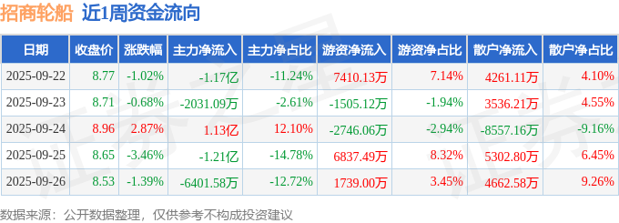 沪深股通持股方面,截止2025年9月26日收盘,招商轮船沪股通持股数为3.95亿股,占流通股比为485.0%。