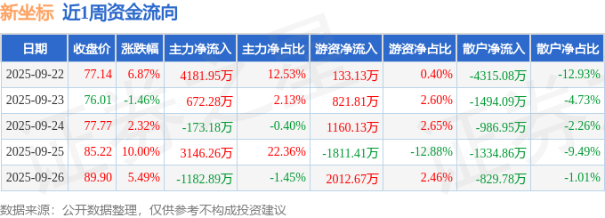 资金流向数据方面,本周新坐标主力资金合计净流入6644.42万元,游资资金合计净流入2316.34万元,散户资金合计净流出8960.76万元。本周资金流向一览见下表: