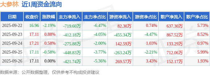 资金流向数据方面,本周大参林主力资金合计净流出2278.23万元,游资资金合计净流出224.13万元,散户资金合计净流入2502.35万元。本周资金流向一览见下表: