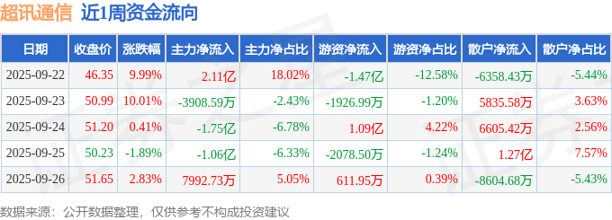 资金流向数据方面,本周超讯通信主力资金合计净流出2974.66万元,游资资金合计净流出7213.82万元,散户资金合计净流入1.02亿元。本周资金流向一览见下表: