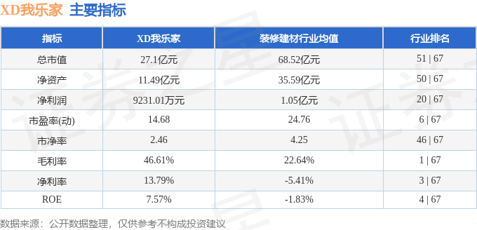 该股主要指标及行业内排名如下: