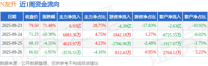 资金流向数据方面,本周C友升主力资金合计净流入7.73亿元,游资资金合计净流出4.3亿元,散户资金合计净流出3.42亿元。本周资金流向一览见下表: