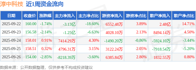 资金流向数据方面,本周淳中科技主力资金合计净流出3.99亿元,游资资金合计净流入1.86亿元,散户资金合计净流入2.13亿元。本周资金流向一览见下表: