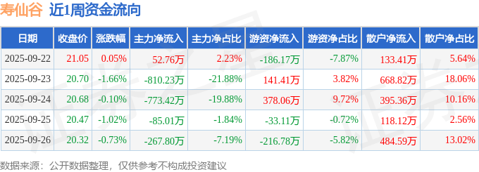沪深股通持股方面,截止2025年9月26日收盘,寿仙谷沪股通持股数为83.23万股,占流通股比为42.0%。