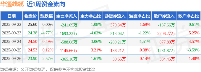 资金流向数据方面,本周华通线缆主力资金合计净流出1743.04万元,游资资金合计净流出256.05万元,散户资金合计净流入1999.09万元。本周资金流向一览见下表: