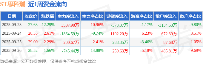 资金流向数据方面,本周ST思科瑞主力资金合计净流入1098.55万元,游资资金合计净流入790.1万元,散户资金合计净流出1888.65万元。本周资金流向一览见下表: