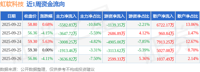 资金流向数据方面,本周虹软科技主力资金合计净流出1.78亿元,游资资金合计净流出3871.75万元,散户资金合计净流入2.17亿元。本周资金流向一览见下表: