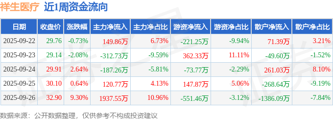 资金流向数据方面,本周祥生医疗主力资金合计净流入1708.18万元,游资资金合计净流出336.28万元,散户资金合计净流出1371.9万元。本周资金流向一览见下表: