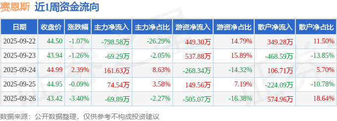资金流向数据方面,本周赛恩斯主力资金合计净流出701.6万元,游资资金合计净流入363.33万元,散户资金合计净流入338.27万元。本周资金流向一览见下表: