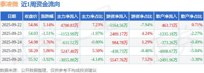 资金流向数据方面,本周泰凌微主力资金合计净流入5126.91万元,游资资金合计净流入3418.43万元,散户资金合计净流出8545.34万元。本周资金流向一览见下表: