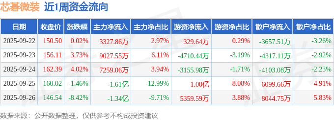 资金流向数据方面,本周芯碁微装主力资金合计净流出9918.02万元,游资资金合计净流入7851.31万元,散户资金合计净流入2066.71万元。本周资金流向一览见下表: