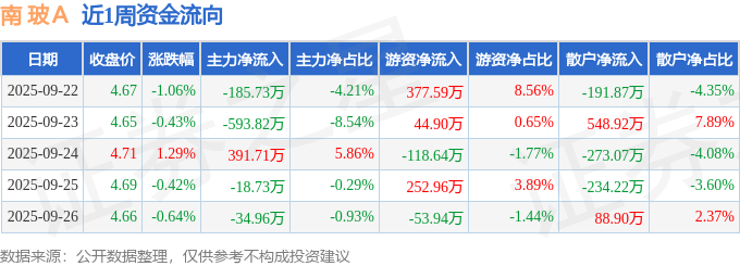 资金流向数据方面,本周南 玻A主力资金合计净流出441.53万元,游资资金合计净流入502.87万元,散户资金合计净流出61.34万元。本周资金流向一览见下表: