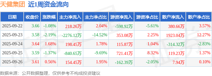 资金流向数据方面,本周天健集团主力资金合计净流出2545.61万元,游资资金合计净流入429.06万元,散户资金合计净流入2116.56万元。本周资金流向一览见下表: